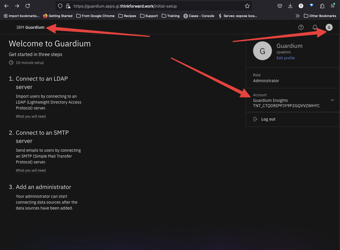 We set the URL for Guardium Insights to guardium.apps.gi.thinkforward.work in our CR. Now open this in a browser.