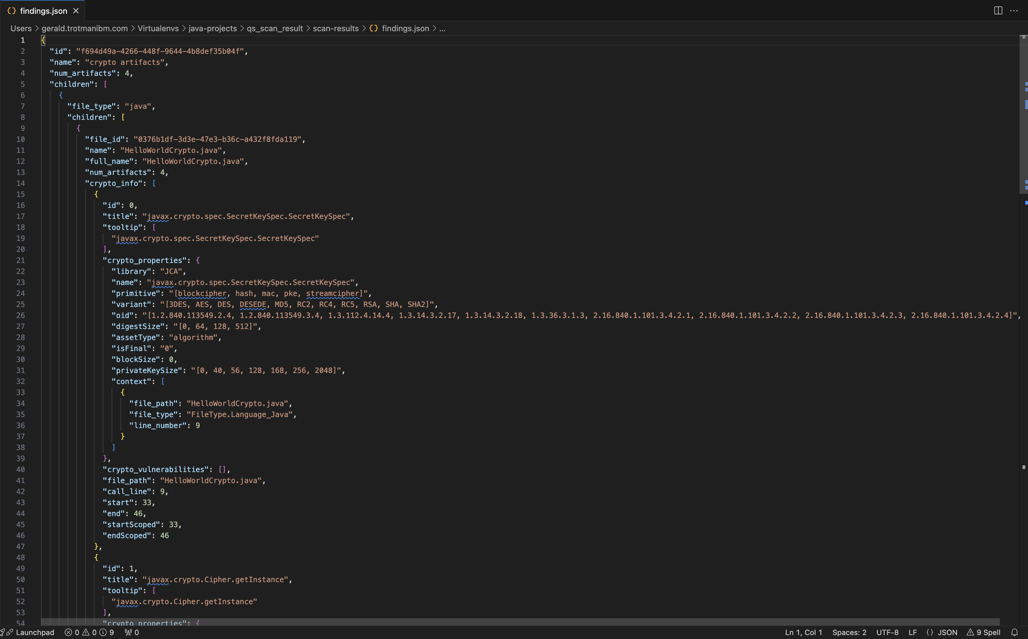 The results of your scan are written to a findings.json file and can be found nested within your project path. It resemble the following: