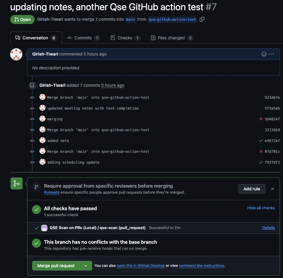 uses: ./.github/actions/qse-scan ### Accesses a local action yaml instead of the separate GitHub Action