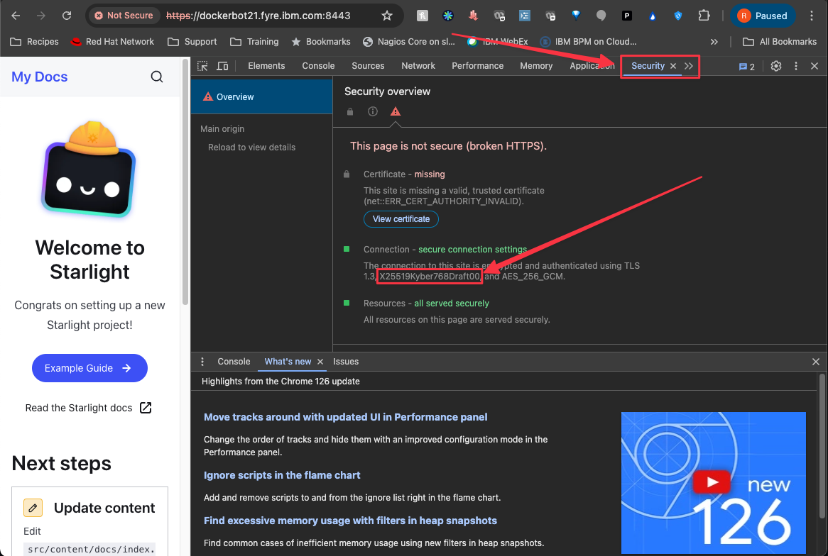 Now that our site is up and proxied, let’s verify that it’s using a Quantum Safe algorithm for encryption.